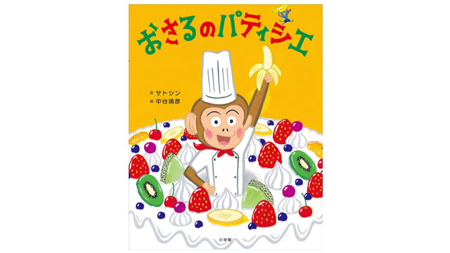 サトシンさん文、中谷靖彦さん絵の『おさるのパティシエ』(2012年 小学館)は、情熱いっぱいのケーキ職人“おさるくん”が主人公のお話です。ケーキ屋のオーナーに頼まれ、新しい看板メニューを考えることになったおさるくん。使命感に燃えて試行錯誤をくり返し、失敗しては反省し、でもすぐに立ち直ってまた挑戦します。その姿は一生懸命でちょっとドジだけど、応援したくなる愛らしさにあふれています。最後に完成する渾身の傑作ケーキは、読んでいてワクワク!読み聞かせはもちろん、親子でケーキ作りの過程を楽しめる仕掛けもたっぷりの、にぎやかで明るい一冊です。